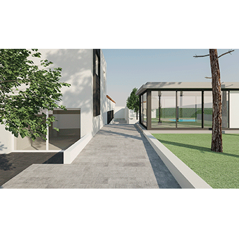 El proyecto ordena el patio lateral de la vivienda, añadiendo una edificación auxiliar muy transparente. Este nuevo espacio servirá de estar-comedor de verano y además añadirá una cocina-barbacoa y un baño auxiliar. Adyacente a esta edificación se ubica una piscina, rodeada de un pavimento de madera natural que marca el camino hasta la vivienda.