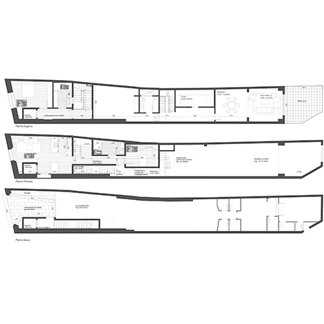 Así, pues, el acceso a la vivienda se traslada desde el interior de la planta hasta la fachada para independizar la planta baja, que se destinará a local comercial, y el resto de la vivienda propiamente dicha. También se instala un ascensor que comunica la planta baja con las dos plantas de la vivienda para que sea accesible.