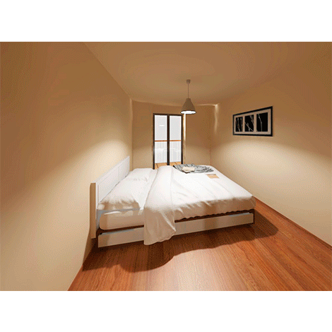 La intervención, pues, contempla dos viviendas por planta, una de 60m2 y otra de 110m2. La más pequeña cuenta con dos habitaciones, un baño y un espacio amplio único de cocina, estar y comedor. La más grande cuenta con cuatro habitaciones, dos baños y un espacio amplio único de cocina, estar y comedor.