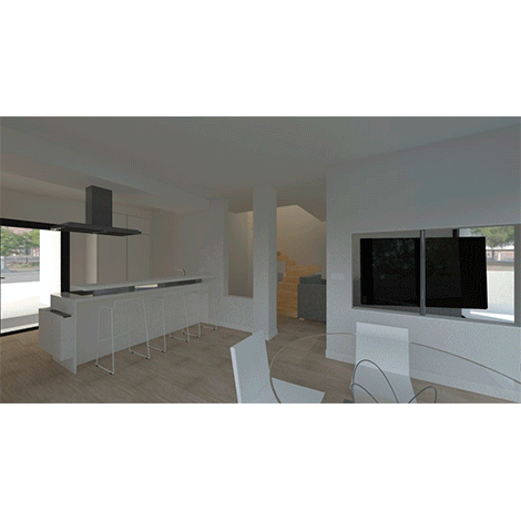 Para aprovechar mejor el espacio, se traslada la sala de estar y comedor a la planta baja y se añade una habitación en la planta primera. Además, también se instala un nuevo baño y se derriba la escalera exterior y se hace una nueva en el interior de la vivienda.